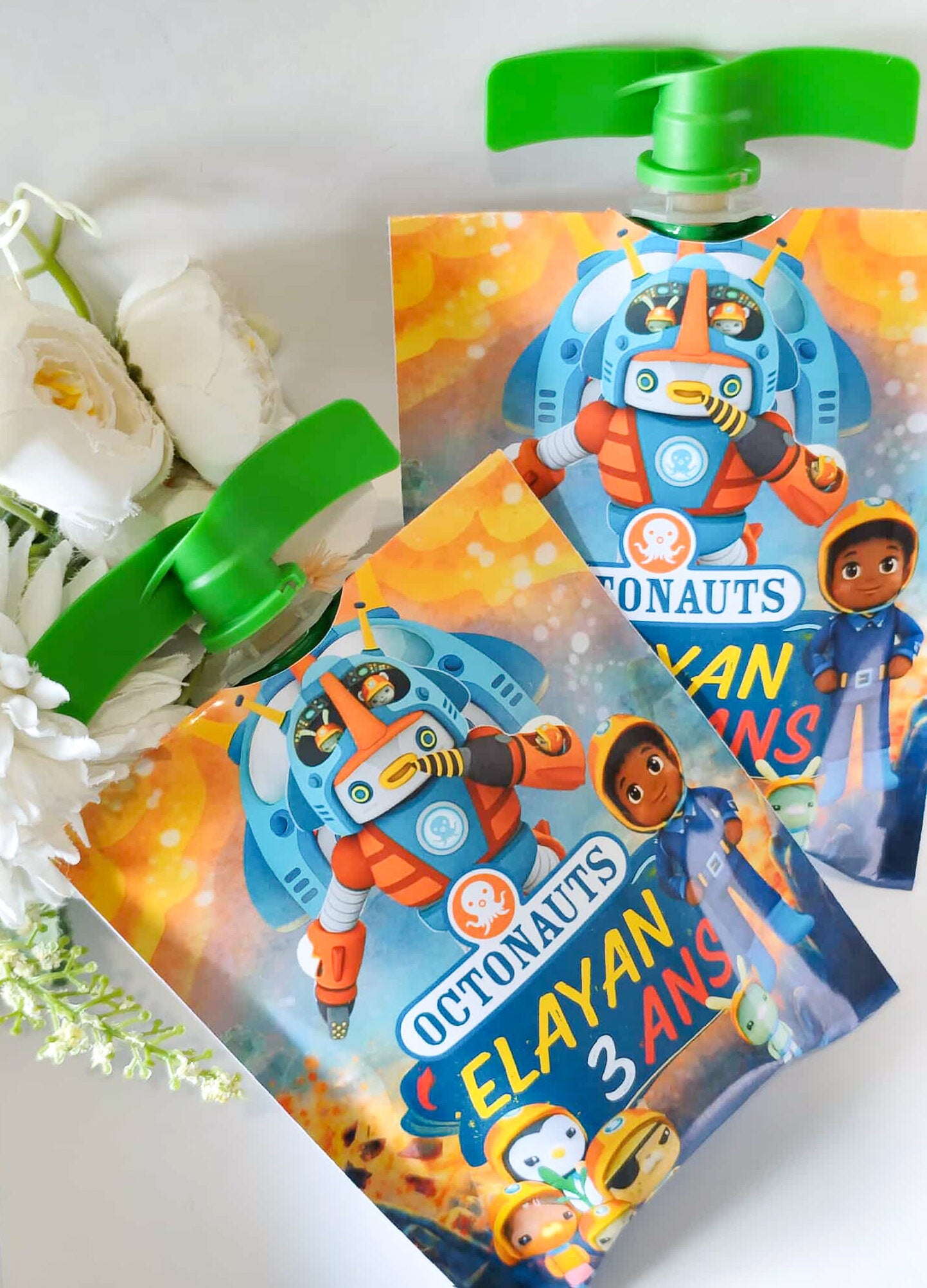 Gourde de compote personnalisé pour un évènement unique à l'image de vos envies. Notez nous votre thème et votre texte dans la case personnalisation pour être au plus près de vos envies. Pgacreations se chargera de donner vie à vos envies.