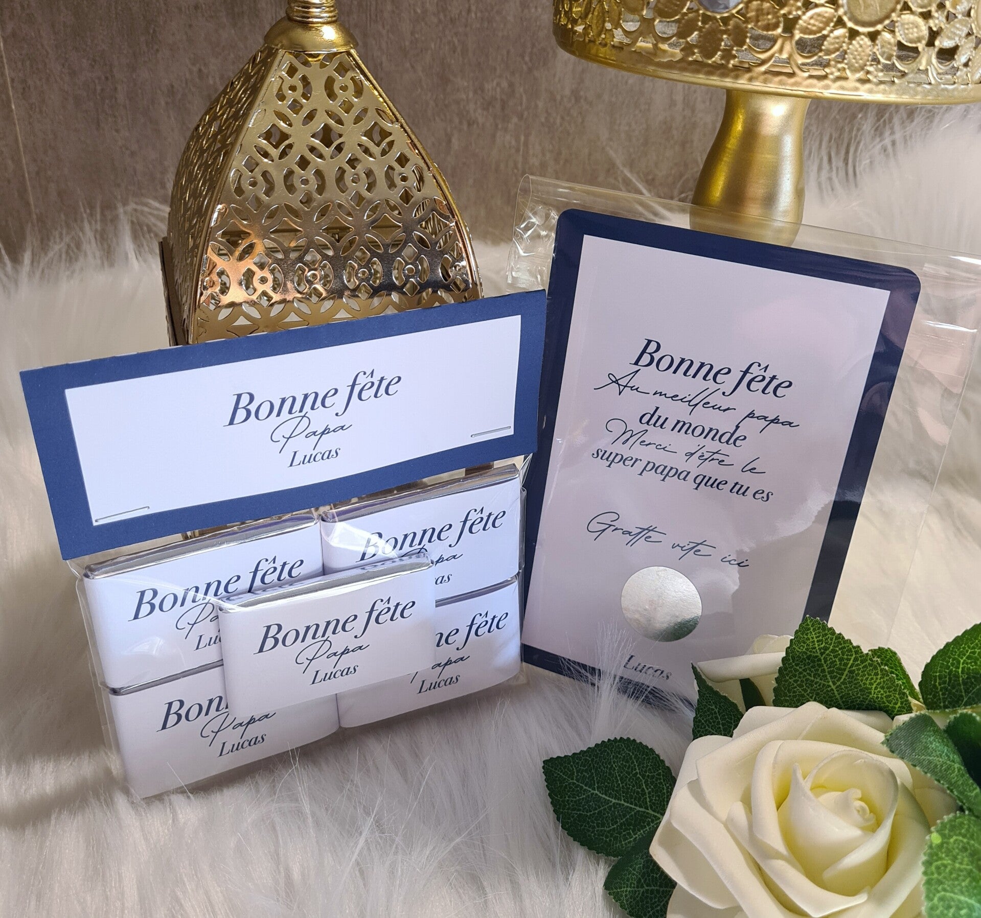 Sachet de 5 chocolats au lait + carte a gratter personnalisé